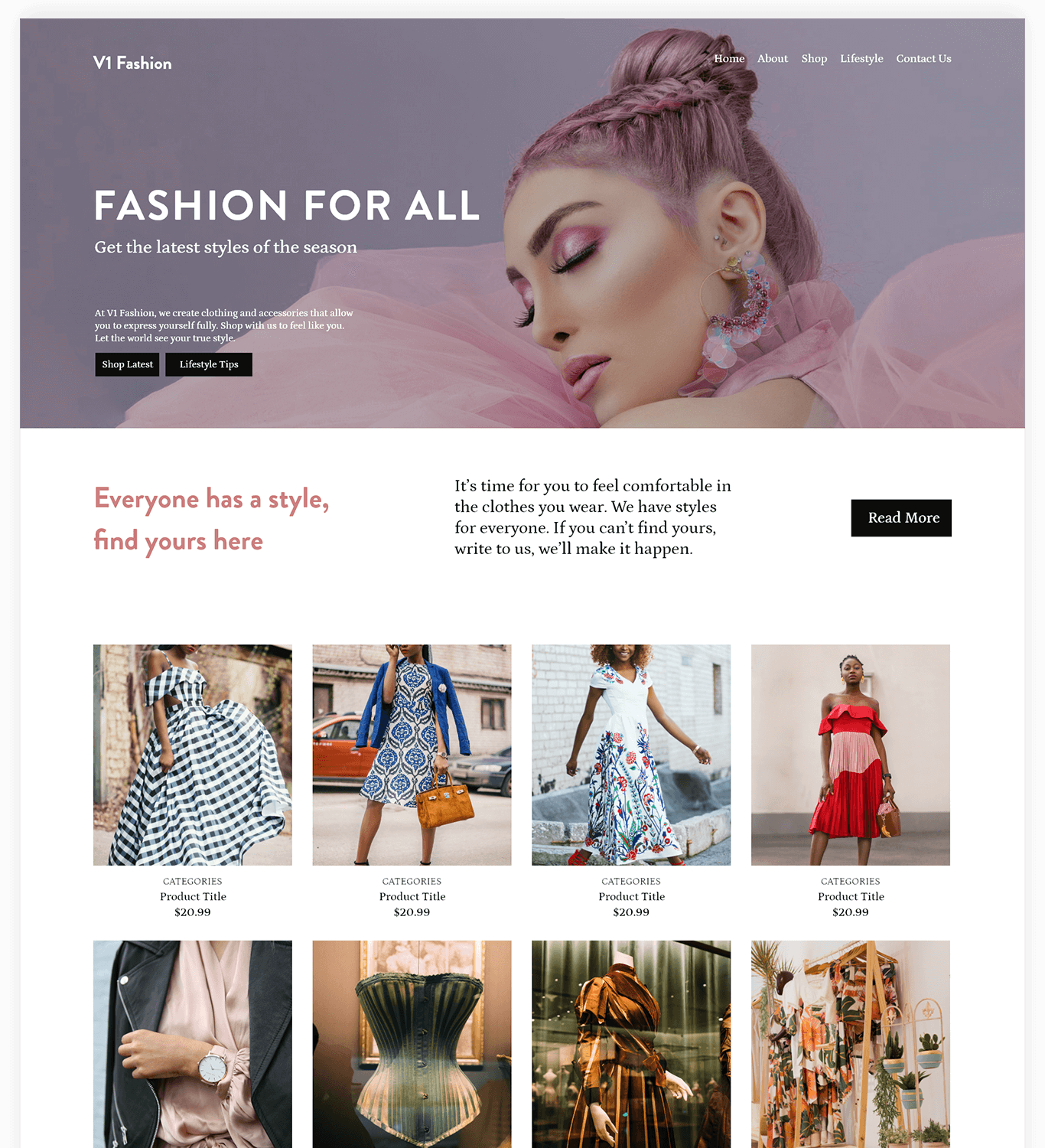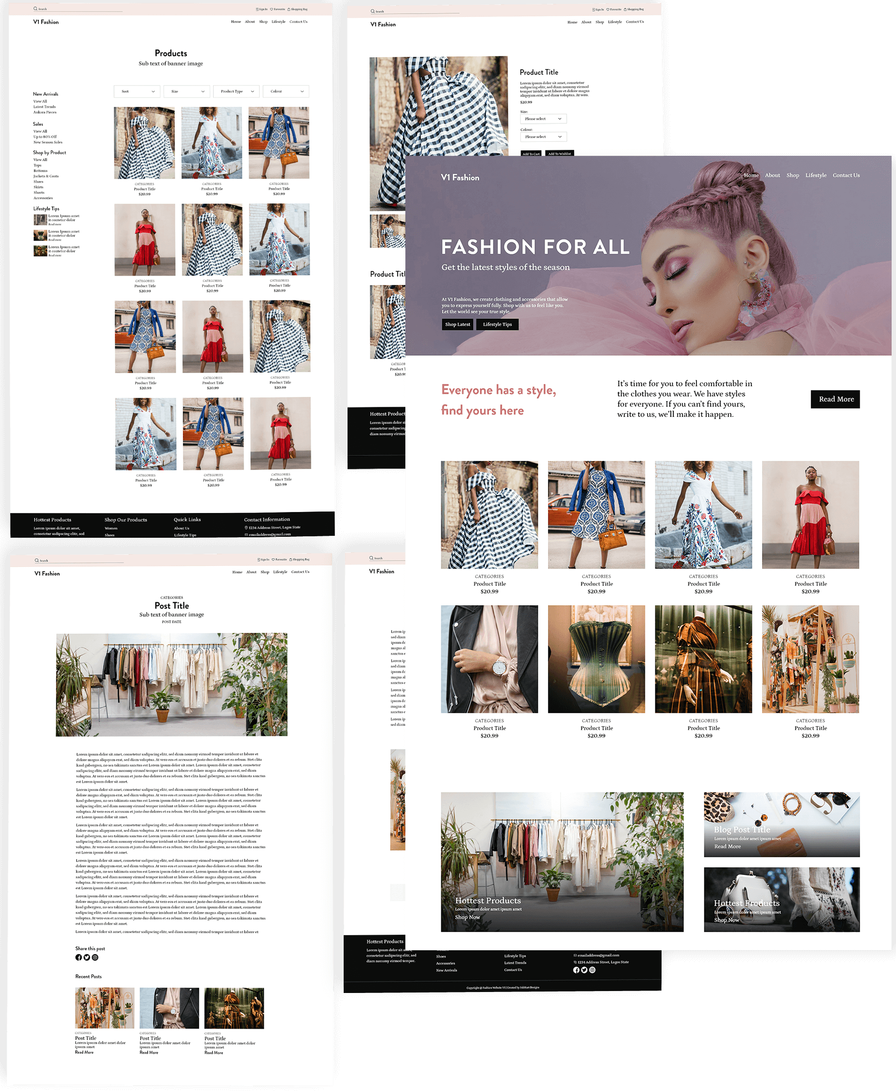 V1 Fashion is a fictional fashion brand. The website doubles as an online e-commerce store and a blog that provides lifestyle and fashion tips.